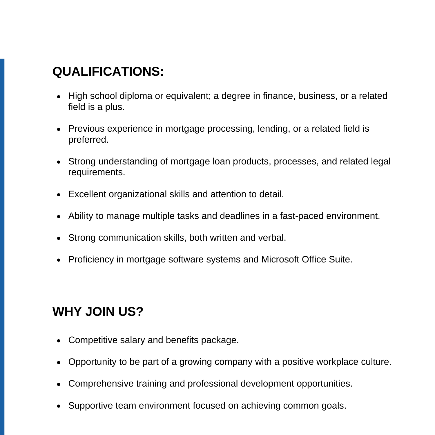 We are currently seeking a detail-oriented and organized Team Member to join Secure Choice Lending. Please note this is an on-site job at our headquarters location in Riverside CA. The ideal candidate will be responsible for managing and executing a variety of tasks to ensure the timely and accurate processing of mortgage-related disclosures. This role is pivotal in maintaining compliance and enhancing our customer's experience by ensuring all necessary documentation is accurately disclosed.